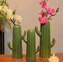 Ceramic Cactus Decorative Showpiece – Set of 3